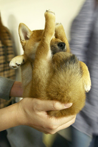 何だかいつも困ったような顔。^^;そして抱っこをしようとすると、まるでアルマジロのように丸まってしまいます!!